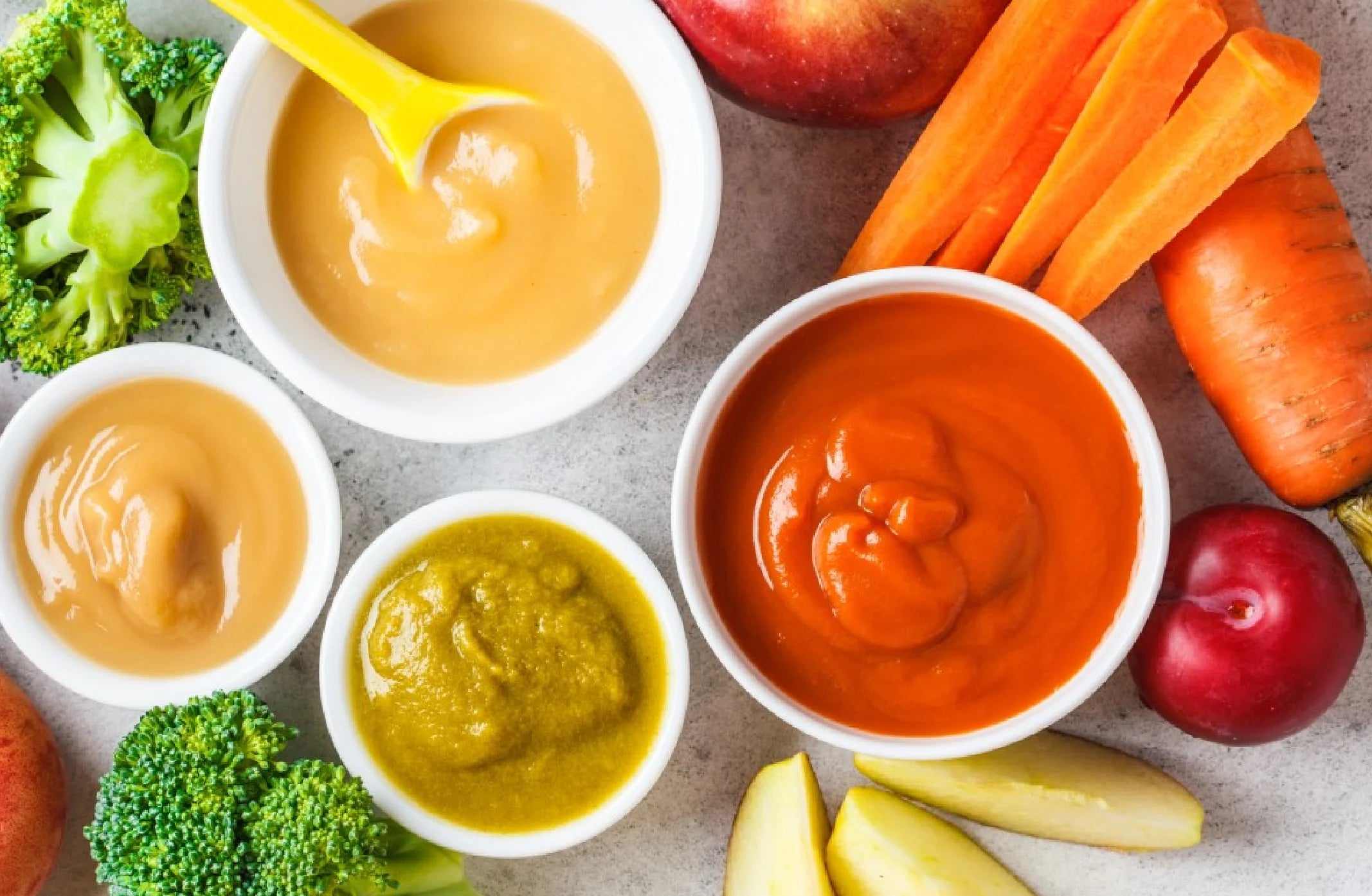 Healthy protein-rich foods pureed to a consistency of baby food, with no large lumps. Most foods can be blended to this consistency, and if not loose enough, some added water or other liquid can be added.