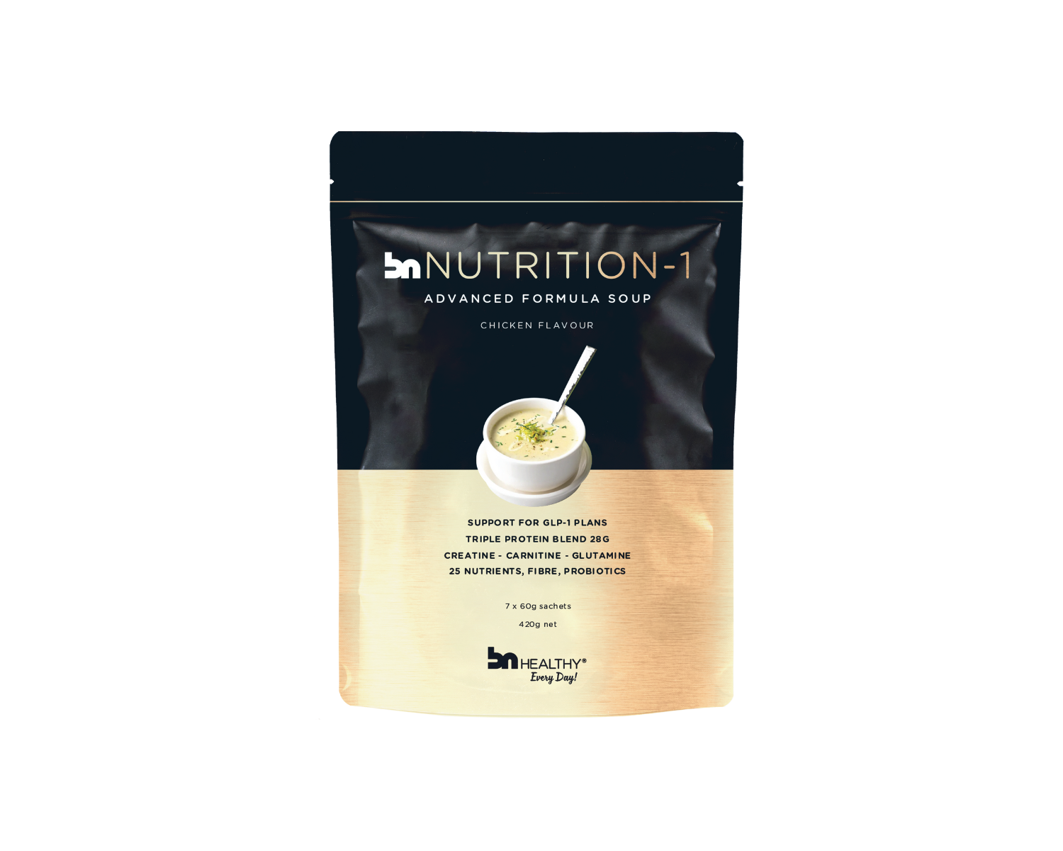 BN Nutrition-1 has the basis of a formulated meal replacement in that it contains the vitamins and minerals required by FSANZ to replace a meal safely.